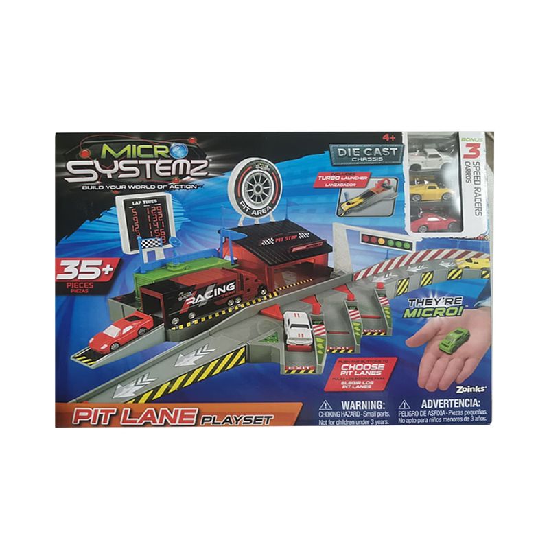 ¡Prepárate para la acción en los boxes con el Playset Pit Lane Micro Systemz! Este set incluye todo lo necesario para recrear emocionantes paradas en boxes y mantener tus vehículos en perfecto estado para la carrera. Con múltiples accesorios y vehículos exclusivos, este playset es ideal para niños a partir de 4 años y coleccionistas que aman el mundo de las carreras.